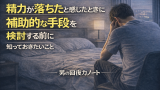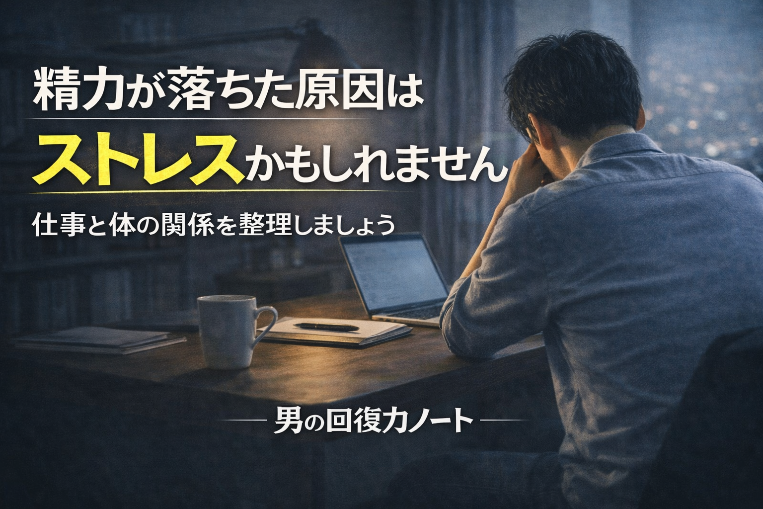 精力が落ちたと感じたときの原因や立て直し方を、全体像から整理したまとめページがあります。▶ 精力が落ちたと感じたときに読むまとめ|原因から立て直しまでの全体像